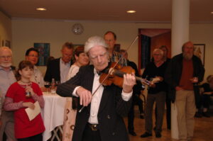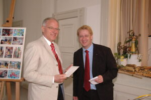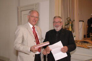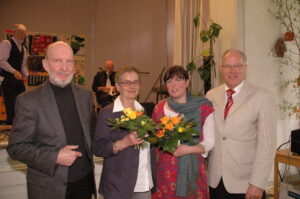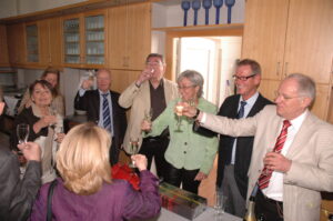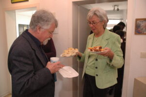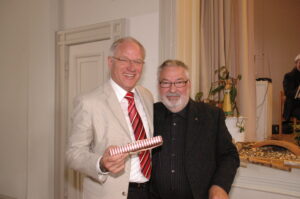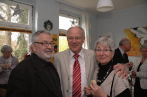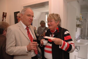 Mit diesem Auszug aus einer Presseveröffentlichung der Aktivgruppe des Kunstvereins Schleswig und Umgebung im Jahre 1987, die selbst nach 25 Jahren noch den Geist unseres Vereins verkörpert, eröffnete Jürgen Wind (1. Vorsitzender) seine Festansprache und begrüßte die anwesenden Gäste. Dr. Hans-Joachim Hupe (stellvertretender Vorsitzender) würdigte in seiner Rede den Künstler und Gründungsmitglied Gerd Guse, dessen Werke bei einem Empfang, anschließend an den Festakt im Helios Klinikum, im Kreativhus gezeigt wurden. Dort war Zeit in alten Erinnerungen zu schwelgen und sich bei einem kleinen Imbiss über die vergangenen Jahre auszutauschen und neue Pläne für eine aktive Zukunft zu schmieden.
