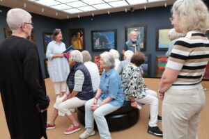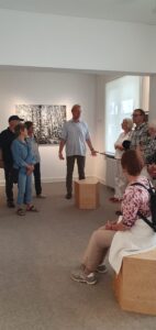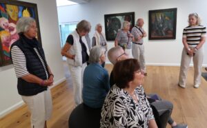 Nach einer kurzen Busfahrt erreichten wir das Richard Haizmann Museum in Niebüll. Im Vergleich zu Noldes farbenfroher Ausdruckskraft empfing uns hier eine ganz andere, aber ebenso faszinierende Welt. Richard Haizmanns Werke, die oft durch abstrakte und geometrische Formen geprägt sind, eröffneten uns neue Perspektiven auf die Kunst. Dr. Christian Schulz, kunsthistorischer Leiter des Museums, führte uns sachkundig durch die Ausstellung. Besonders beeindruckend waren Richard Haizmanns Skulpturen, die trotz ihrer oft simplen Formen eine enorme Ausdruckskraft besitzen. Die Sonderausstellung der Maler Jochen Hein und Günter Zachariasen sorgte bei den Teilnehmern für viel Gesprächs- und Diskussionsstoff hinsichtlich technischer Ausführung und künstlerischer Aussage.