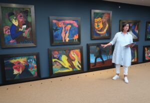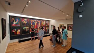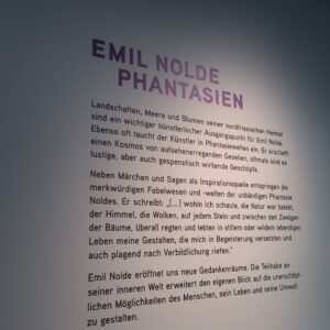 Im Museum wurden wir von zwei freundlichen Mitarbeiterinnen empfangen, die uns mit ihrer Begeisterung und ihrem Wissen sofort in ihren Bann zogen. Die 68. Jahresausstellung widmet sich dem Thema »PHANTASIEN«. Zu Gast sind auch Meisterwerke der Düsseldorfer Privatsammlung Renate und Friedrich Johenning. Das Bild »Hl Drei Könige (Typen)«, ein kraftvolles expressionistisches Frühwerk Emil Noldes von 1912 bereichert zukünftig die Sammlung des Museums und wurde von Professor Hermann Gerlinger geschenkt. Emil Nolde, einer der bedeutendsten expressionistischen Maler Deutschlands, hat hier nicht nur gelebt, sondern auch seine farbenprächtigen Werke geschaffen, die nun die Wände des Museums zieren. Beginnend mit dem neunteiligen Altarwerk «Das Leben Christi« von 1911/12 über den Bildersaal bis hin zu den berühmten »ungemalten Bildern« tauchten wir in eine Welt voller leuchtender Farben und intensiver Emotionen ein.